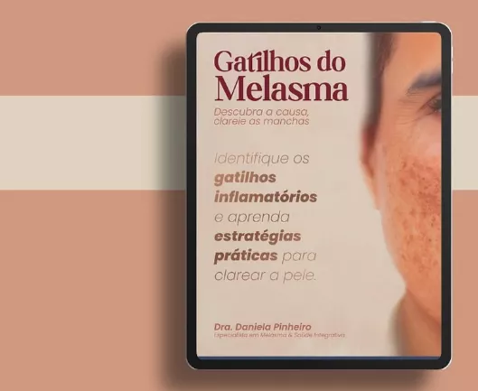 O e-book Gatilhos do Melasma é para quem convive com Melasma ou Rosácea e quer aprender a controlar a mancha, evitar a piora e conquistar uma pele mais saudável e sem manchas.